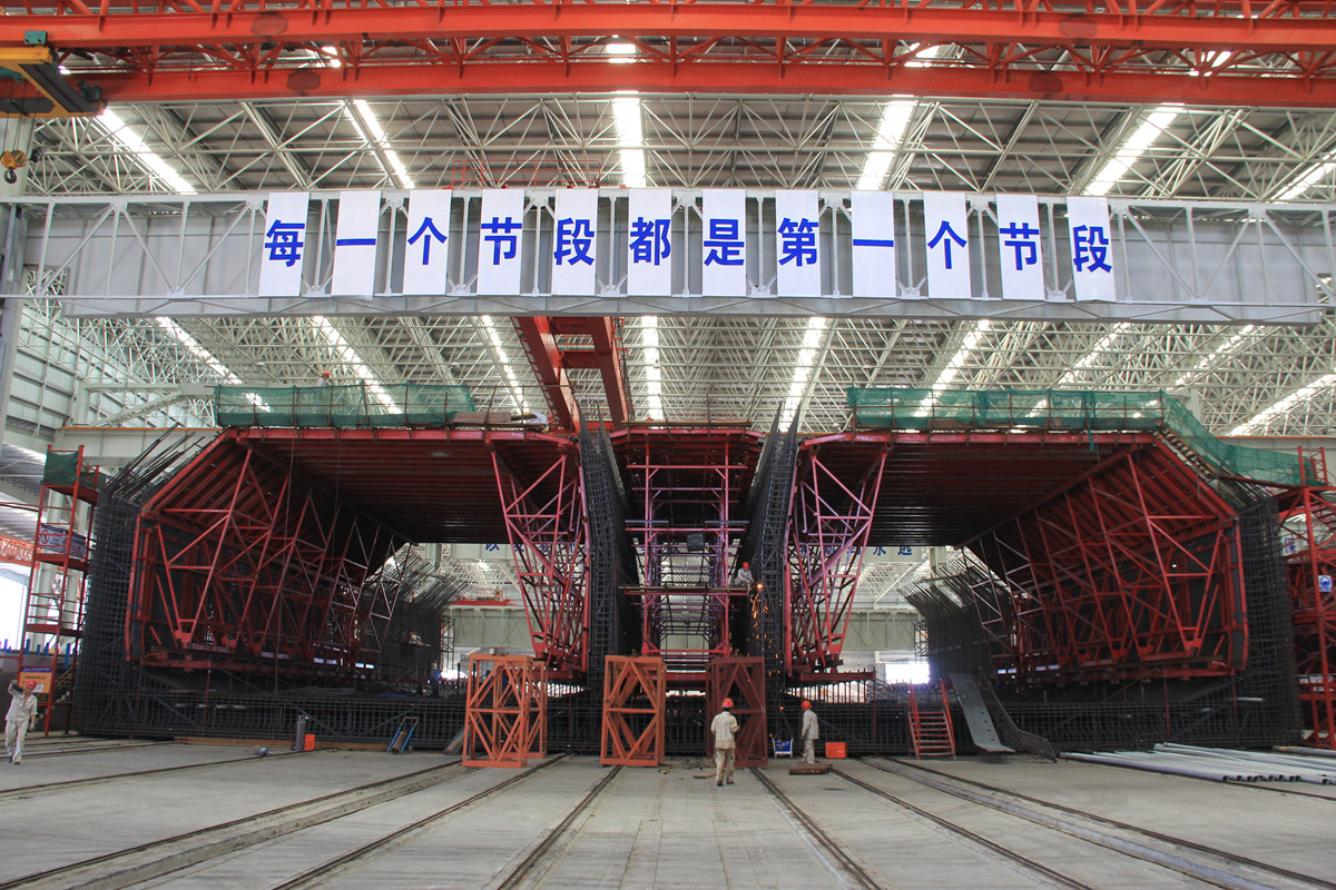 沉管隧道大型管節(jié)工廠法流水線施工屬國內(nèi)首例,該項目在沉管鋼筋流水線施工技術(shù)、全斷面液壓模板系統(tǒng)一次成型沉管施工技術(shù)、大管節(jié)混凝土構(gòu)件防裂技術(shù)、三點支撐液壓頂推技術(shù)等方面均有重大創(chuàng)新,研究成果中多項新材料、新技術(shù)、新工藝、新設(shè)備填補(bǔ)了國內(nèi)技術(shù)空白,成果達(dá)到國際領(lǐng)先水平。