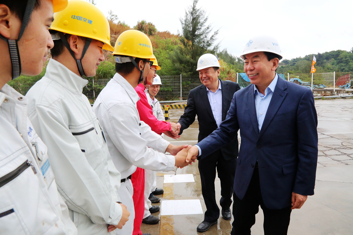 11月10日,國務(wù)院國資委副主任、黨委副書記張喜武一行到港珠澳大橋島隧工程項目調(diào)研。中國交建董事長、黨委書記劉起濤陪同調(diào)研,并介紹了中國交建依靠全產(chǎn)業(yè)鏈優(yōu)勢建設(shè)港珠澳大橋、服務(wù)“一帶一路”戰(zhàn)略的情況。