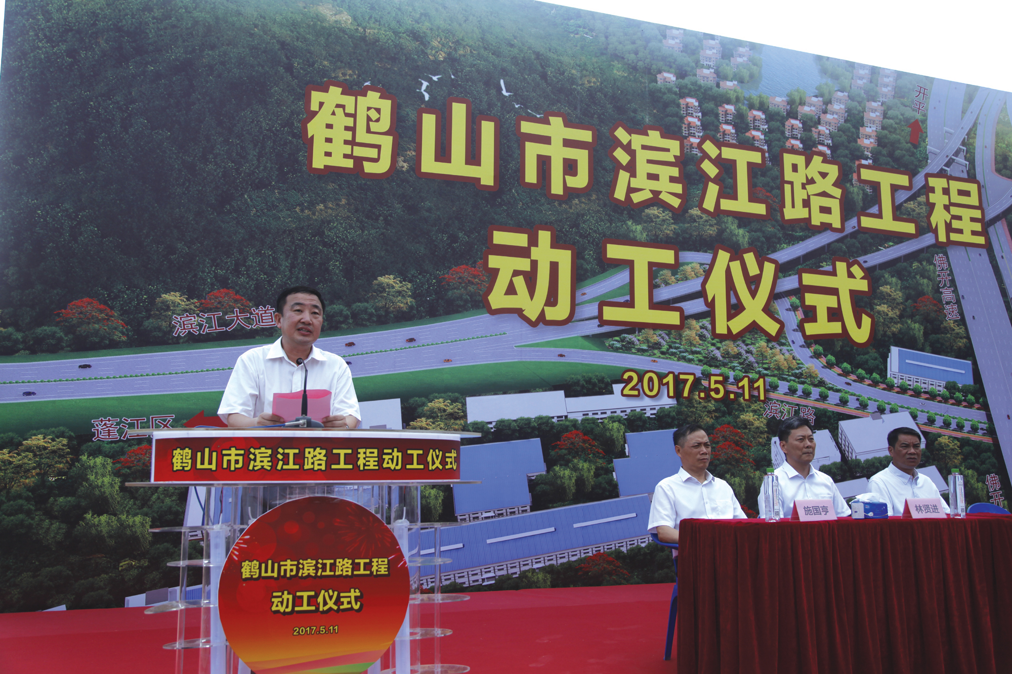 5月11日,四航局董事長、黨委書記梁卓仁出席鶴山市濱江路工程動工儀式。鶴山市委書記伍培進、市長林賢進等領導參加儀式。