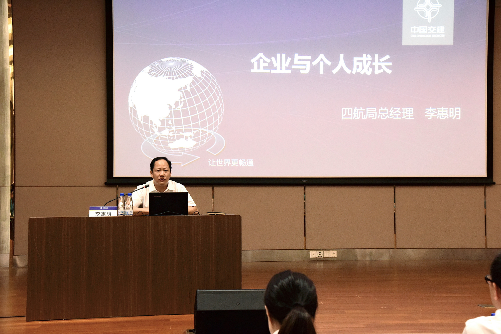李惠明就《企業(yè)與個(gè)人成長》主題進(jìn)行授課,講述了四航局的發(fā)展目標(biāo)、戰(zhàn)略定位、戰(zhàn)略重點(diǎn),并從國際環(huán)境變化、國內(nèi)市場發(fā)展、企業(yè)內(nèi)部變化等探討了四航局未來的發(fā)展空間,表示四航局將為廣大員工提供發(fā)揮才能的舞臺。他要求新員工:要盡快適應(yīng)新環(huán)境;要學(xué)會與人合作;要堅(jiān)持終生學(xué)習(xí);要平衡好工作和生活。