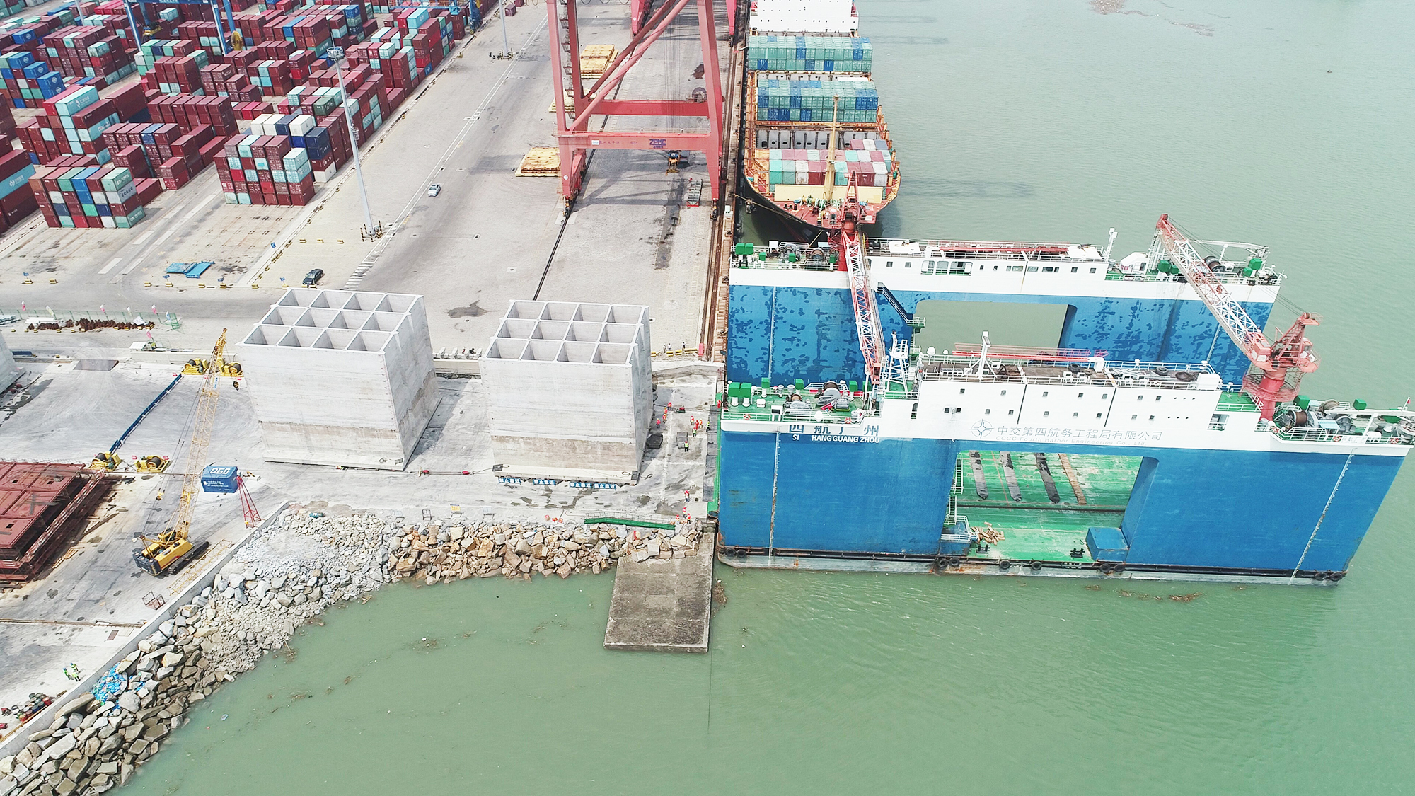 泉州石湖項(xiàng)目完成首件沉箱出運(yùn)安裝