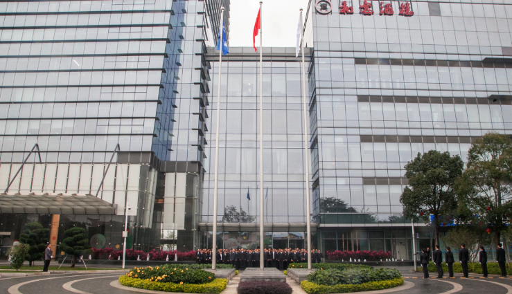 伴隨著中華人民共和國(guó)國(guó)歌《義勇軍進(jìn)行曲》、《四航之歌》的鏗鏘旋律,五星紅旗和中國(guó)交建司旗在6名升旗手的護(hù)衛(wèi)下冉冉升起。本部全體員工肅立仰望,向五星紅旗和中國(guó)交建司旗行注目禮,自豪感和神圣感油然而生。
