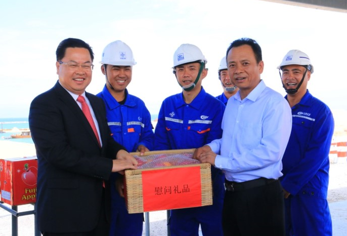 近日,中國駐斯里蘭卡大使程學源到四航局參建的科倫坡港口城項目慰問看望春節(jié)期間堅守崗位的項目部員工。