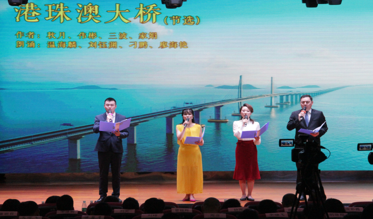 近日,四航局聯(lián)合社會(huì)各界在廣東省立中山圖書館成功舉辦《江山今更嬌》秋月專場大型詩歌朗誦演唱會(huì),演繹“我和我的祖國”的深情,向新中國70華誕獻(xiàn)禮。活動(dòng)由中國交建、廣東省文聯(lián)、廣東省作協(xié)指導(dǎo),中交四航局和廣東省朗誦協(xié)會(huì)、廣東省立中山圖書館、中國誦讀會(huì)廣東分會(huì)主辦,秋月詩社、中成國際、博研商學(xué)院承辦。廣東省文聯(lián)主席、中國美術(shù)家協(xié)會(huì)原副主席許欽松,廣東省委組織部原副部長羅東凱,廣東省委宣傳部精神文明辦副主任吳祖清,中交四航局副總經(jīng)理萬軍杰,廣東省朗誦協(xié)會(huì)會(huì)長史子興等嘉賓出席,300多名觀眾觀看了演出。