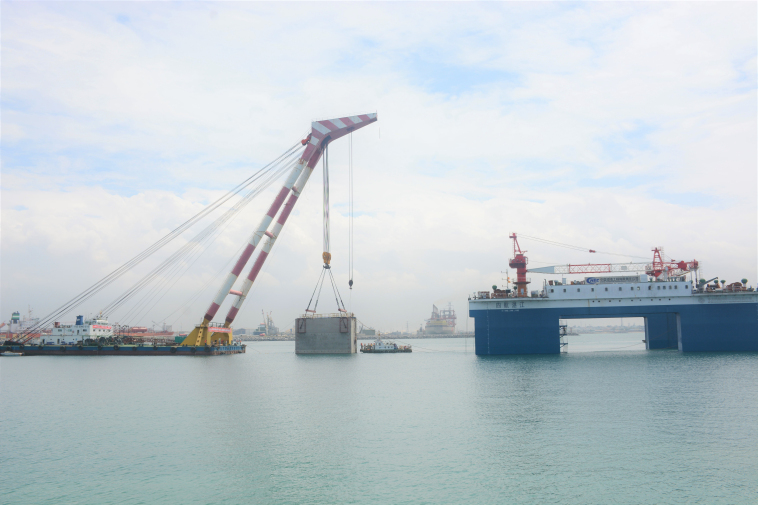 四航局加納特碼LNG碼頭工程項目順利完成首件沉箱安裝任務