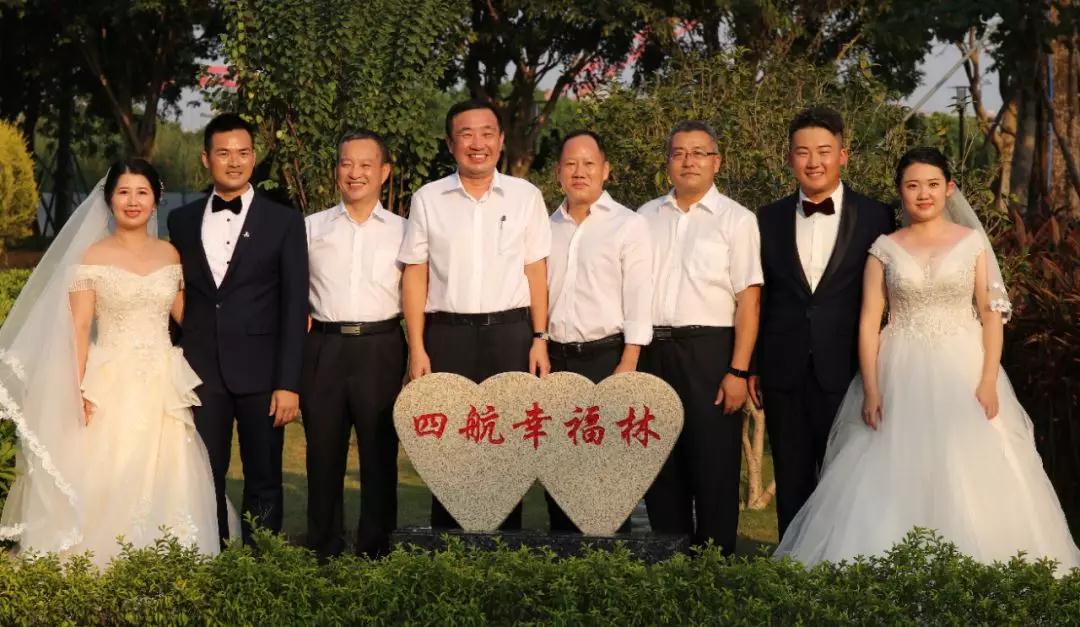 集體婚禮開始前,梁卓仁、李惠明與兩對新人代表共同為“四航幸福林”揭牌,梁卓仁、李惠明、曾瑞雄、費永忠還和兩對新人一起栽下由全體新人捐贈的“幸福樹”,祈愿新人愛情天長地久。