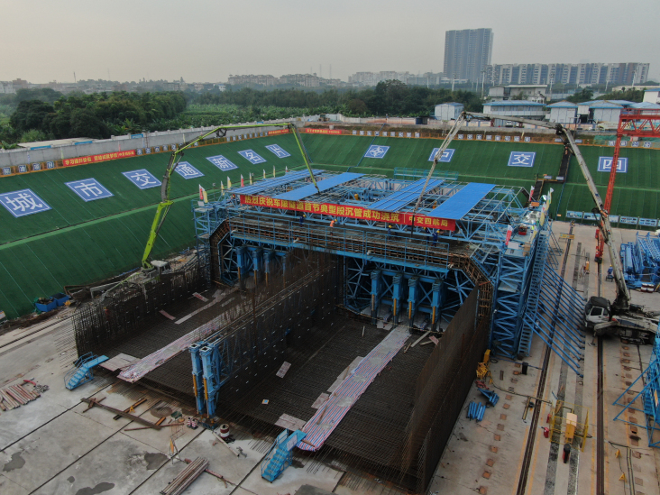 四航局車陂隧道項目完成首節(jié)典型段沉管全斷面澆筑