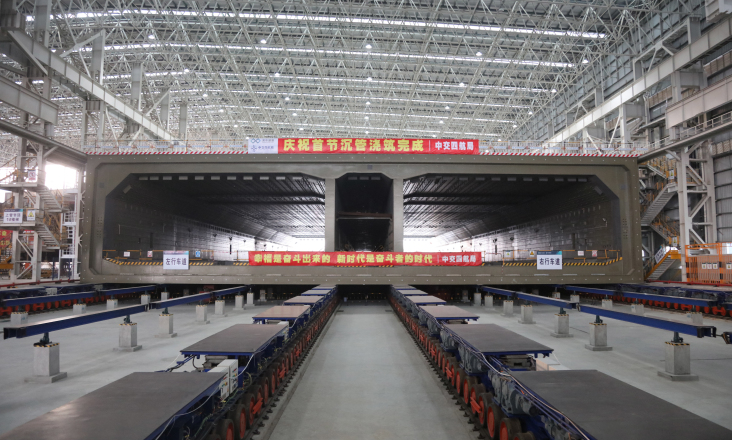 11月30日,四航局深中通道項目完成首個鋼殼沉管——E1管節(jié)最后一個倉格T06-06澆筑施工,標志著牛頭島沉管智慧工廠的鋼殼沉管澆筑正式進入流水線施工階段。