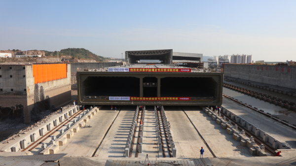 12月6日,由四航局自主研發(fā)制造的世界最大智能臺車編隊運載著完成澆筑的E1管節(jié)到達淺塢區(qū),標志著深中通道首個鋼殼沉管完成移運典型施工。