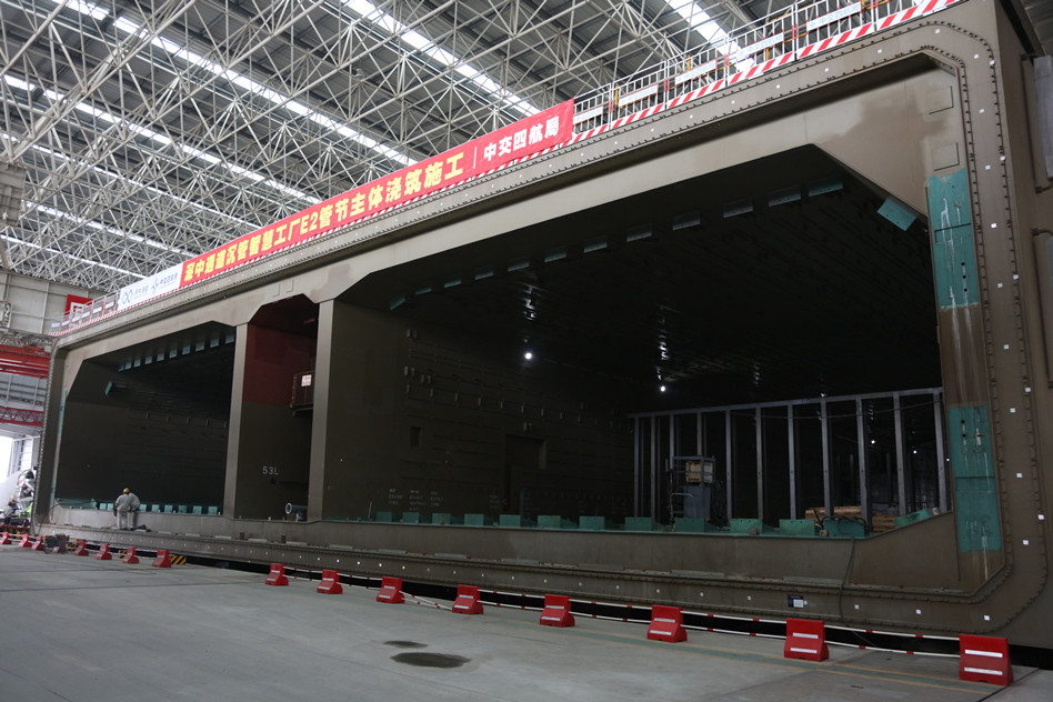 E2鋼殼沉管為深中通道首節(jié)標(biāo)準(zhǔn)鋼殼沉管,長(zhǎng)165米,斷面尺寸寬46米、高10.6米,鋼殼重約1.2萬噸,澆筑完成重約8萬噸,共2255個(gè)倉格,澆筑方量29310立方米。